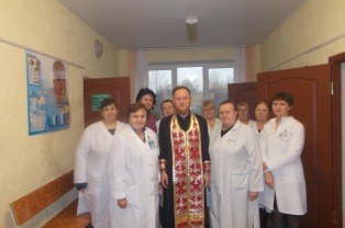 13 ноября 2015Чин освящения совершил настоятель Георгиевского храма агрогородка Залужье Стародорожского района протоиерей Александр Пигаль. В поздравительном слове отец Александр пожелал медицинским работникам Божией помощи в нелегком труде на благо ближнего.