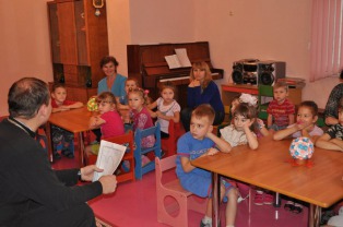 14 ноября 201512 ноября настоятель слуцкого храма благоверного князя Александра Невского священник Сергий Рында посетил дошкольный центр развития ребенка «Золотой ключик» города Слуцка. Встречи могут стать регулярными.