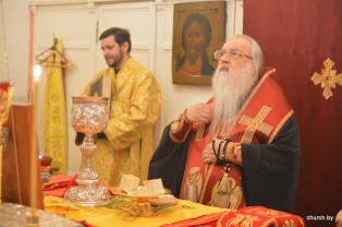 Его Высокопреосвященству сослужили: управляющий делами Минской Экзархии архимандрит Антоний (Доронин), избранный и нареченный во епископа Слуцкого и Солигорского, и клирики кафедрального собора.