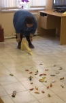 Во время визита братчики исполнили пасхальные песнопения и провели среди воспитанников ОДПИ конкурс катания пасхальных яиц. К победе стремился каждый, но в итоге победила дружба, а призами для участников стали конфеты.