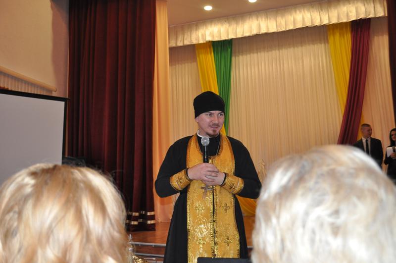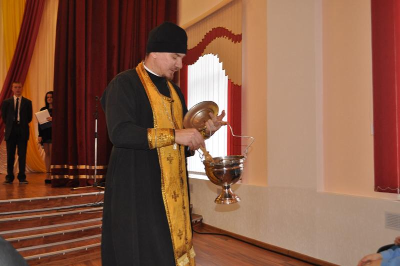 Настоятель Александро-Невского прихода Слуцка иерей Сергий Рында посетил мероприятие по случаю посвящения в кадеты учеников слуцкой средней школы № 2.
