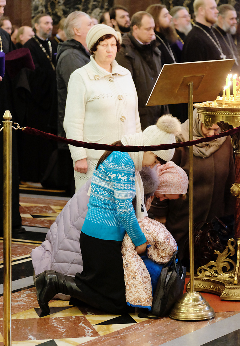 Проповедь перед причастием произнес архимандрит Мелхиседек (Артюхин), настоятель московских храмов святых апостолов Петра и Павла и Покрова Пресвятой Богородицы в Ясеневе.