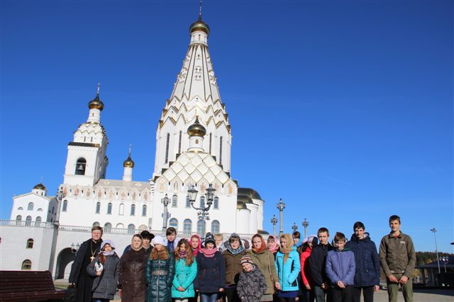 Свое путешествие юные паломники начали с храма-памятника в честь Всех святых. Ребята смогли побывать в крипте, где находятся останки неизвестных солдат трех войн: Отечественной 1812 года, Первой и Второй мировых. Также в крипте собрана земля с полей исторических сражений, где погибали белорусы, отдавая свои жизни для спасения Отечества.