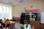 С ребятами начальных классов отец Георгий говорил о жизни Спасителя.