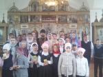 В конце утренника настоятель храма протоиерей Александр Кисель поздравил всех участников с праздником Светлого Христова Воскресения, поблагодарил детей и вручил им сладкие подарки.