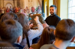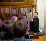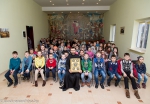 Отец Евгений рассказал школьникам о первых книгах Древней Руси, которые появились благодаря «первоучителям словенским» — святым Кириллу и Мефодию, а также рассказал о роли духовной литературы в жизни человека. «Каждая книга — живая страница нашей истории», — отметил отец Евгений. Узнали ребята и о Слуцком Евангелии.