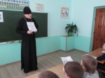 Также отец Андрей поведал учащимся о том, как христиане должны молиться Творцу Вселенной. Священник рассказал детям о молитве «Отче наш», раздал детям распечатанную молитву. Ребята вместе со священником учились выразительно ее читать.