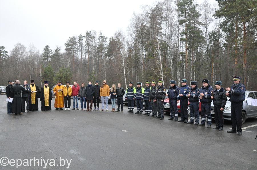 Колокольный звон передвижной звонницы Спасо-Преображенского храма открыл митинг, в котором приняли участие священнослужители, представители ГАИ МВД Республики Беларусь и ГИБДД Российской Федерации.