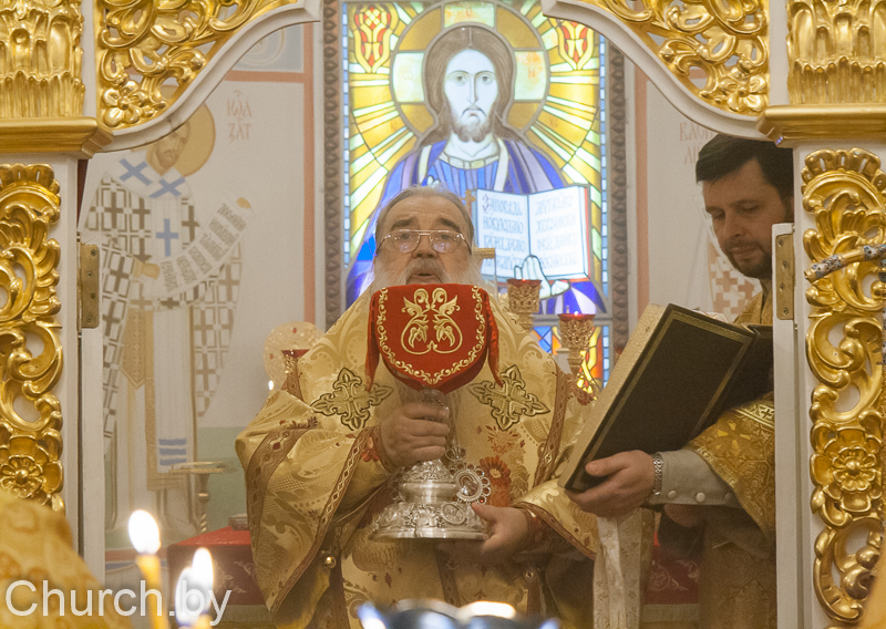Его Высокопреосвященству сослужили: иеромонах Закхей (Вежновец), иерей Макарий Ковалёв, диакон Владимир Долгополов.