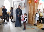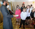 По завершении концерта настоятель храма протоиерей Александр Теляк поздравил всех присутствующих с праздником, а также вручил подарки участникам концерта.