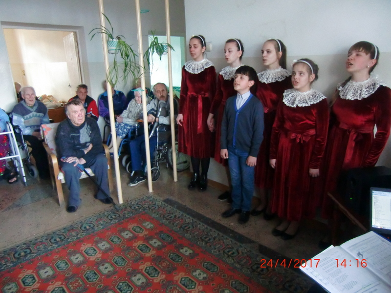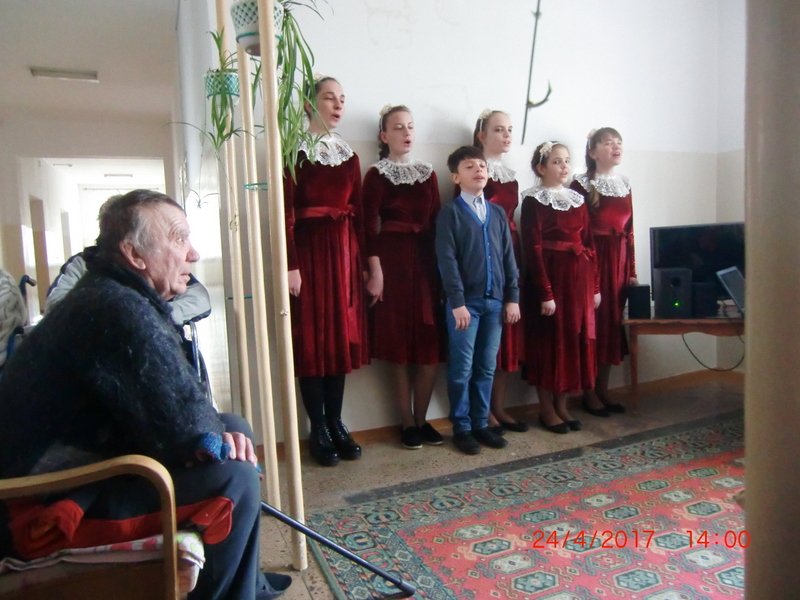 24 апреля вокальная группа «Милосердие» воскресной школы прихода кафедрального собора Рождества Христова в городе Солигорске посетила одиноких пожилых людей, находящихся в больнице сестринского ухода деревни Долгое, которая стала для пациентов вторым домом.
